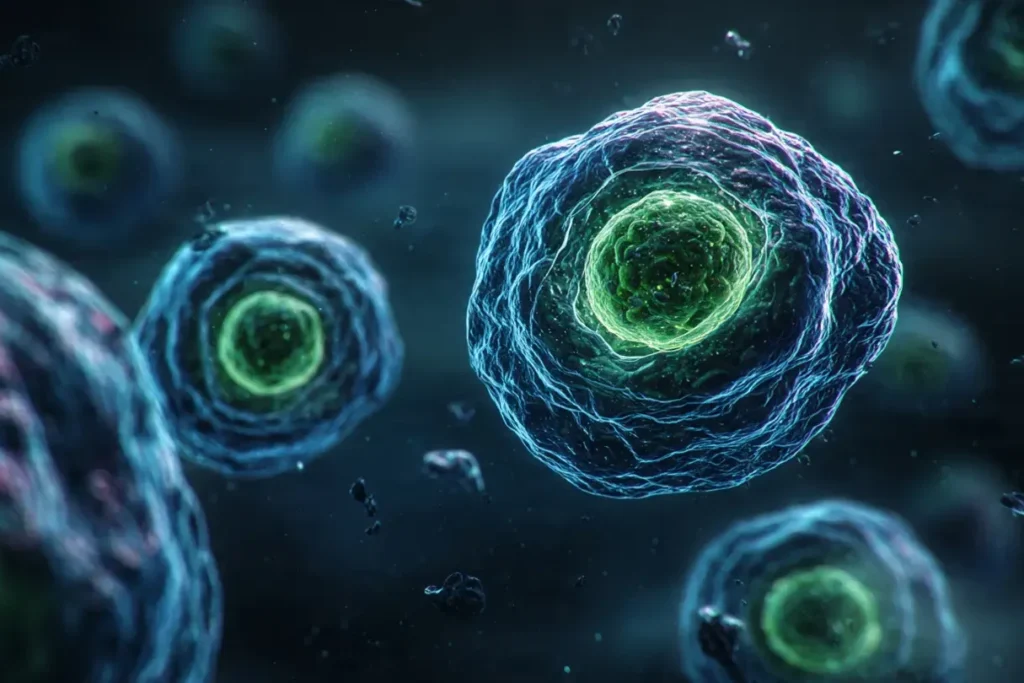 Fondo abstracto de biotecnología minimalista con texturas de fluido orgánico y estilo clean tech.